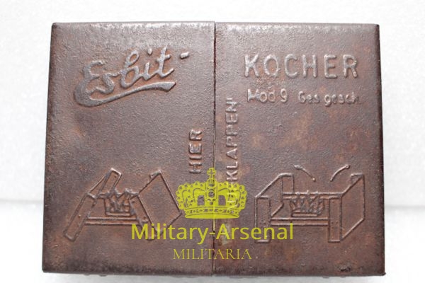 WWII wehramacht fornellino da campo con la sua scatolina di combustibile solido tutto originale d'epoca.